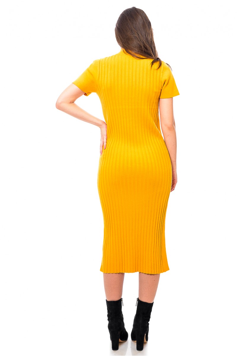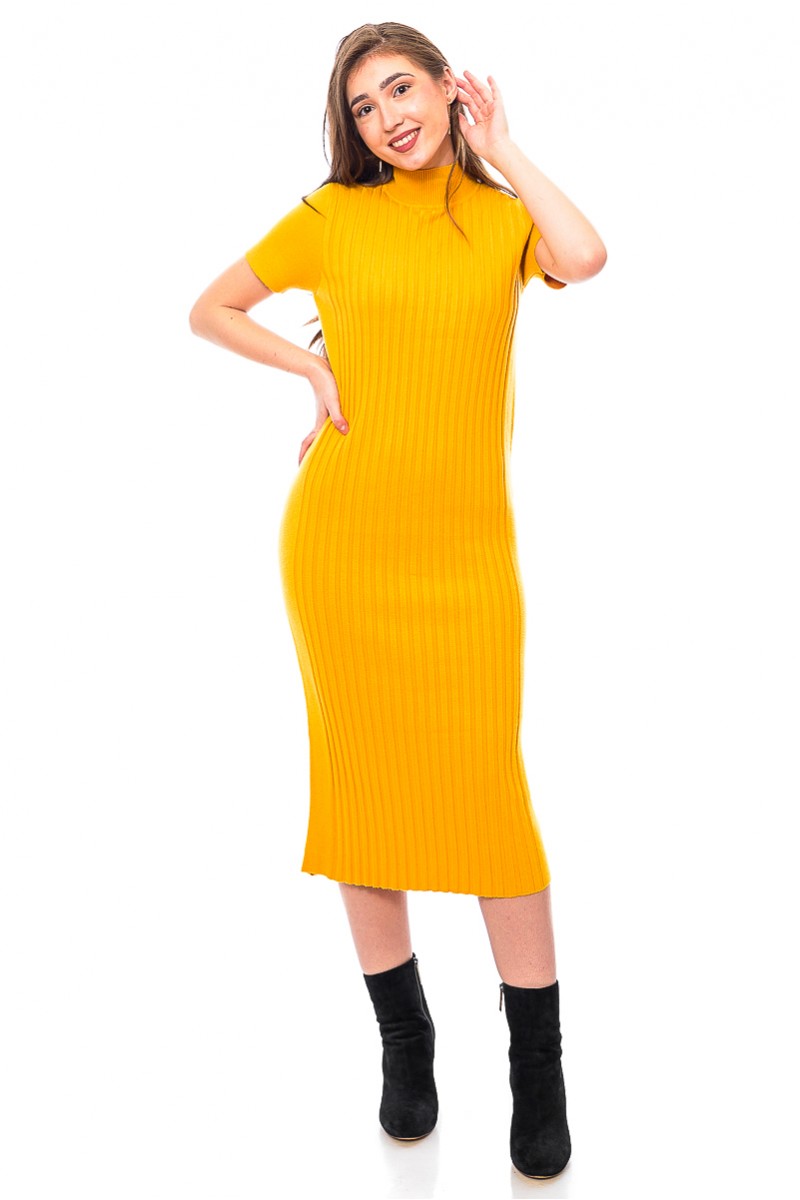 Rochie midi din tricot, cu model striat si maneci scurte, care se muleaza frumos pe corp.