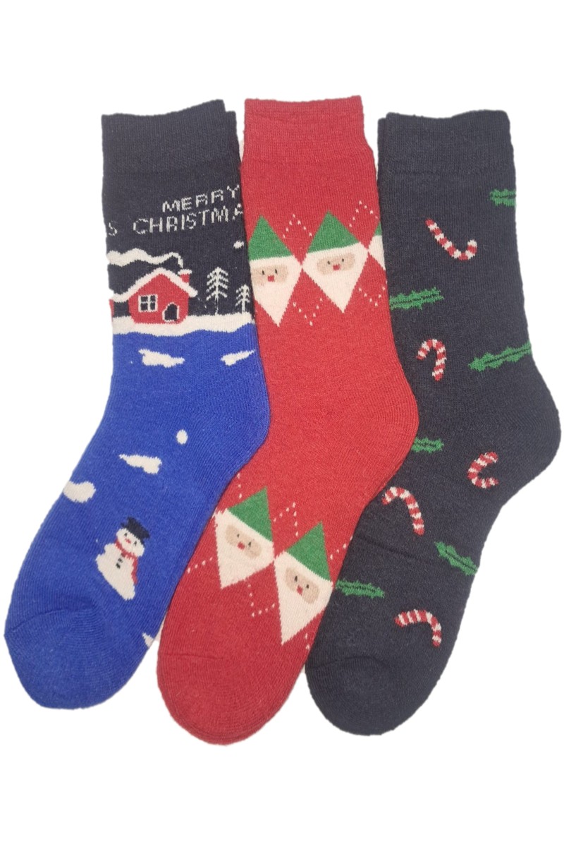Set de 3 perechi de sosete barbatesti, groase, cu motive de Craciun.