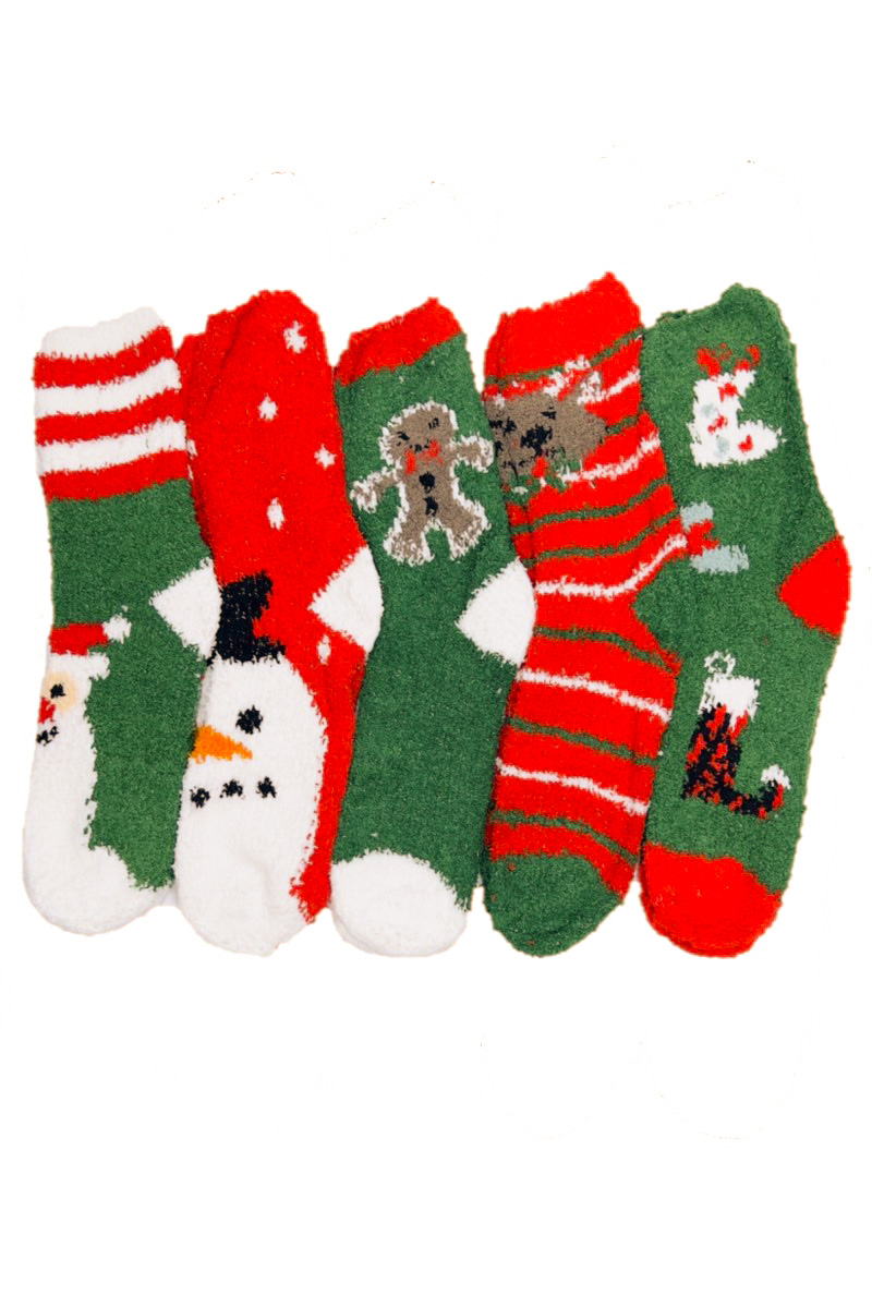 Set de 5 perechi de sosete moi si pufoase cu motive de Craciun. Sosetele, frumos ambalate intr-o cutie cu specific de craciun, vor fi un cadou perfect pentru cineva drag!