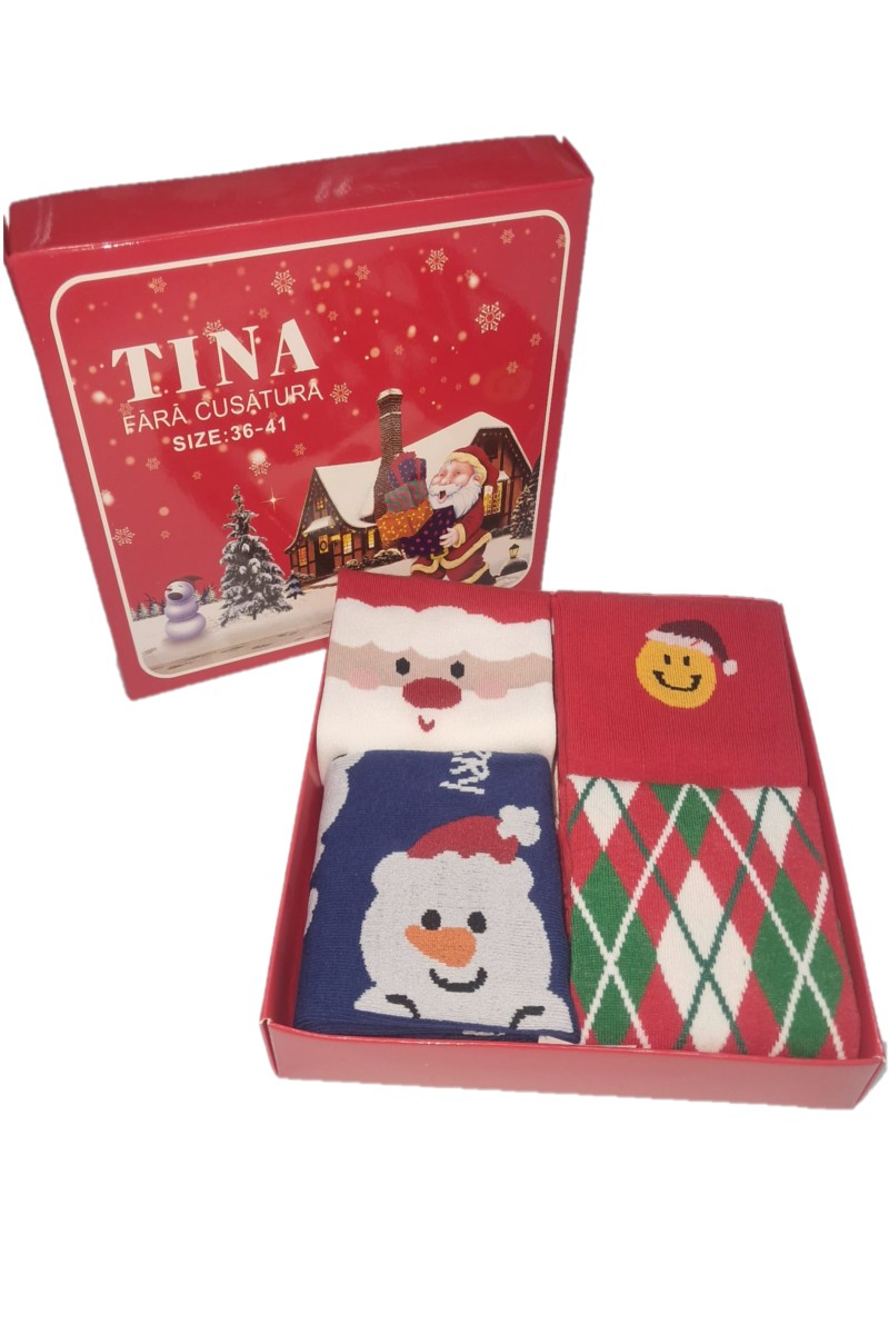 Un cadou perfect pentru Craciun: set de 4 sosete fara cusatura ambalate frumos intr-o cutie rosie. Setul contine 4 sosete diferite.