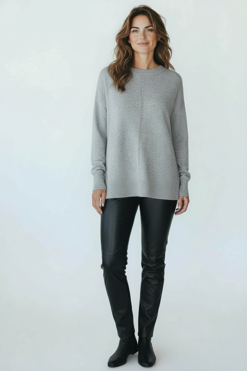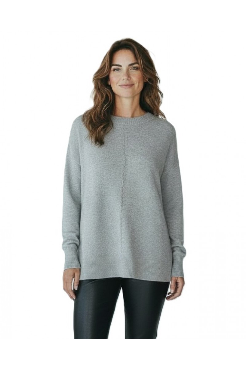 Pulover deosebit de moale si placut la atingere, cu mansete si terminatii striate. Pe partea din fata are un model cu dungi si un lantisor argintiu inserat. In laterale este usor desfacut (7cm).